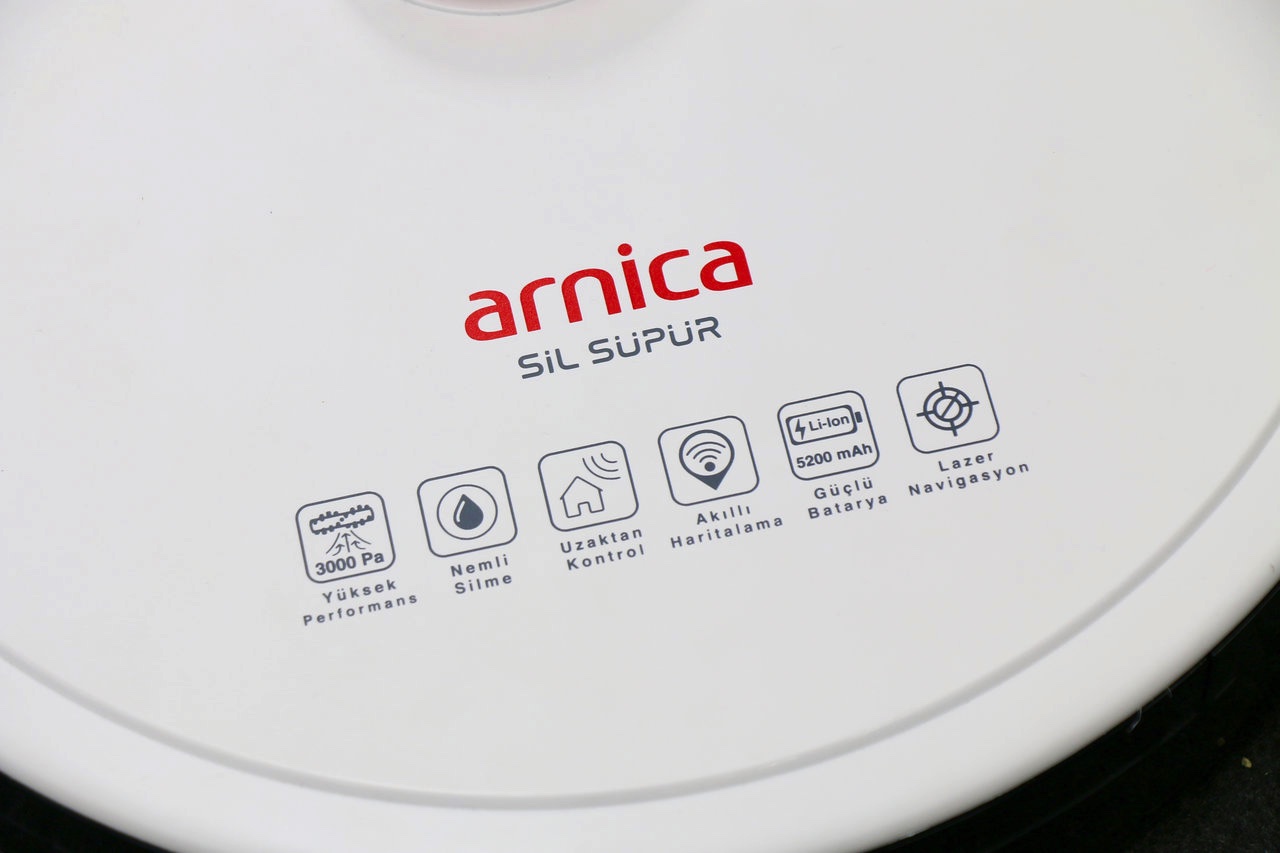 ARNICA Sil Süpür Robot Süpürge, 3000 Pa’lık yüksek bir emiş gücüne sahip. Böylelikle ilk seferde bile küçük tozların ve parçacıkların çoğunu süpürüyor. Kağıt parçası ve bunun gibi daha büyük boyutlu parçalar ise ikinci veya üçüncü seferde temizlenerek iyi bir temizlik sağlanıyor. İki adet kenar fırçası, köşe veya dolap altları gibi bölümlere rahatlıkla ulaşıyor ve buralarda da derin temizlik sağlıyor. Lazer navigasyon özelliği sayesinde sınır, engel ve bunun gibi unsurlar iyi biçimde algılanıyor, evin her yüzeyinin eksiksiz biçimde temizlenmesi sağlanıyor.