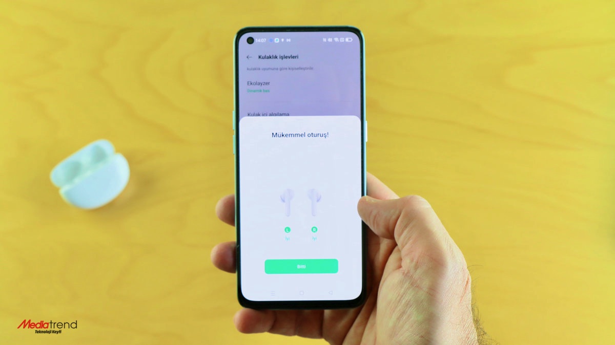 Öte yandan Oppo markalı Reno 6 ile eşleştirme işlemini saniyeler içinde gerçekleştirdiğimizi belirtelim. Kulaklıklar içindeyken şarj kutusunu Reno 6’nın yanına yaklaştırmak ve kapağı açmak eşleştirme işlemini başlatıyor. Daha sonra telefonun ekranında Bağlan seçeneğine tıklattığımızda bağlantı saniyeler içinde kuruluyor.
