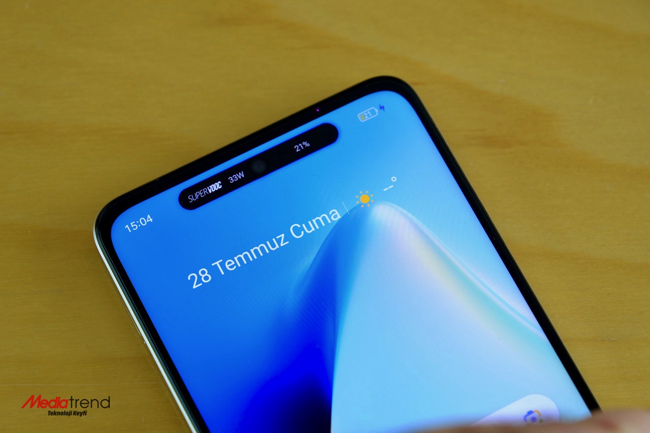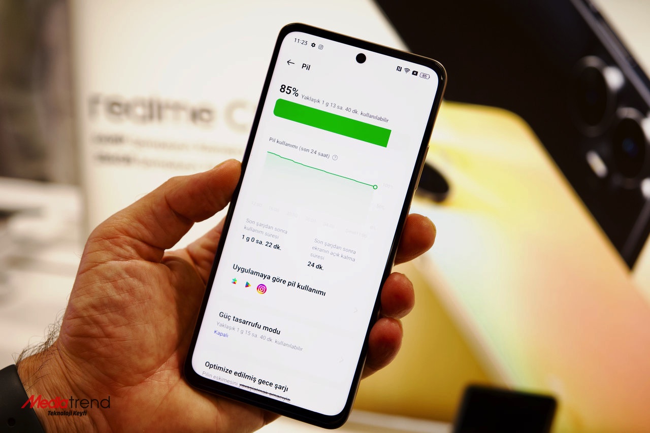 Realme C55, 5000 mAh kapasiteli bir pille geliyor ve bu pil tek bir şarjla normal yoğunlukta bir kullanımda iki güne varan bir kullanım imkanı sunabiliyor. Üstelik 33W SuperVOOC hızlı şarj desteğine sahip, kutusundan çıkan şarj adaptörü de bu değerde. Bu sayede telefonun pilini doldurmak oldukça hızlı. Testler sırasında, pilin doluluk oranı yüzde 12 iken şarja takılan telefon, 67 dakika içinde yüzde 100 doluluk oranına ulaştı. Doluluk oranının yüzde 55 seviyesine çıkması ise sadece 26 dakika sürdü. Realme’nin verdiği bilgilere göre, pil tamamen boşken de yüzde 50 doluluk oranına 29 dakika içinde ulaşılabiliyor. Yani, Realme C55’in pil ve şarj konularını önemseyenler için oldukça iyi bir tercih olduğunu söyleyebiliriz.