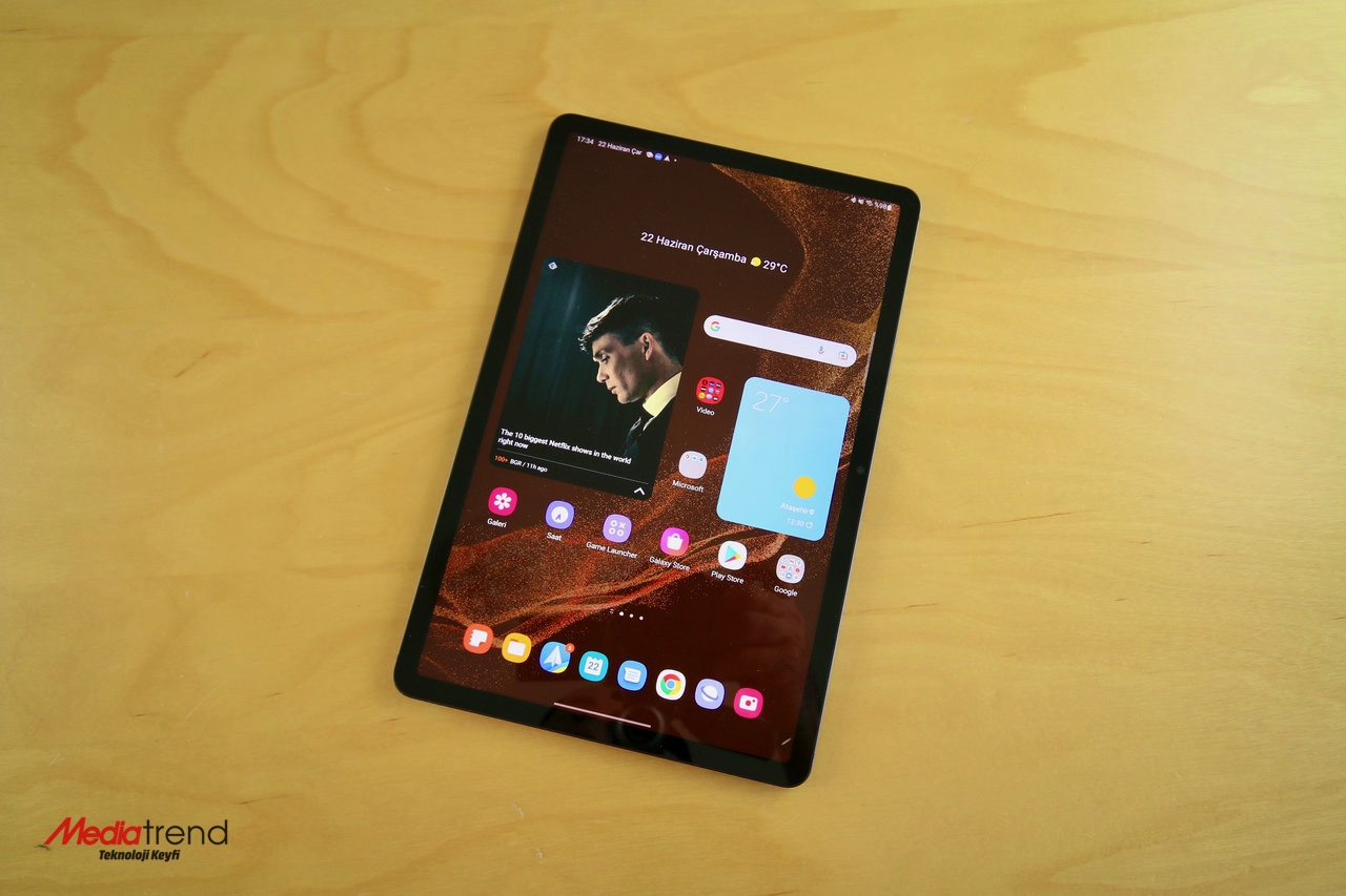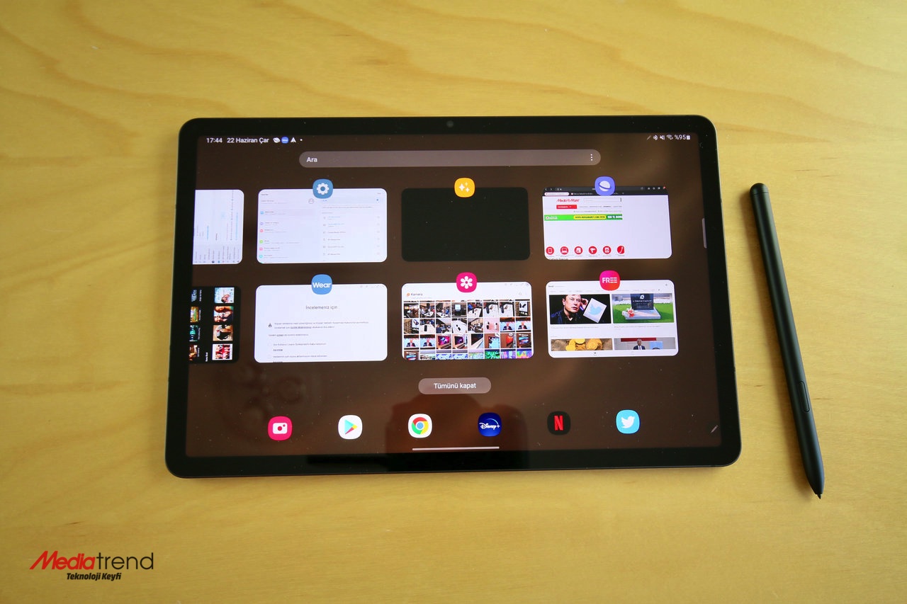 Galaxy Tab S8’de 8000 mAh kapasiteli pil var. Tableti iş akışları içinde ana cihaz olarak kullanan çalışanlar veya öğrenciler için sabahtan akşama bir gün boyunca çalışacak bir performans sergileyecektir. Tabletin genel kullanım seyrine göre konuşacak olursak, her iki günde bir şarj etmek çoğu kullanıcı için yeterli olacaktır. 45W hızlı şarj desteğine sahip olan tabletin kutusundan sadece USB-C kablo çıkıyor. Hızlı şarj desteğinden yararlanmak için uyumlu bir güç adaptörüne ihtiyacınız olacaktır.