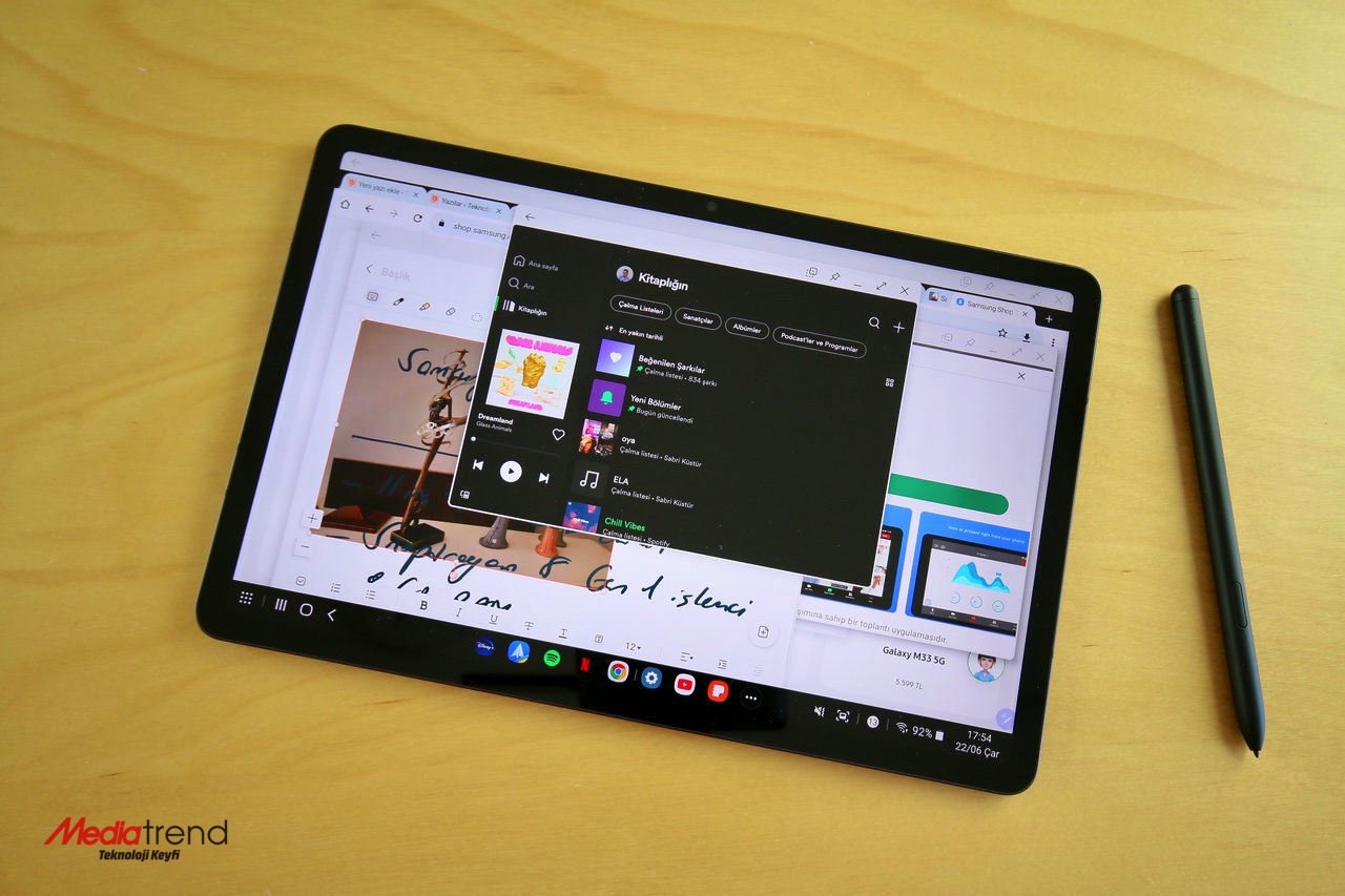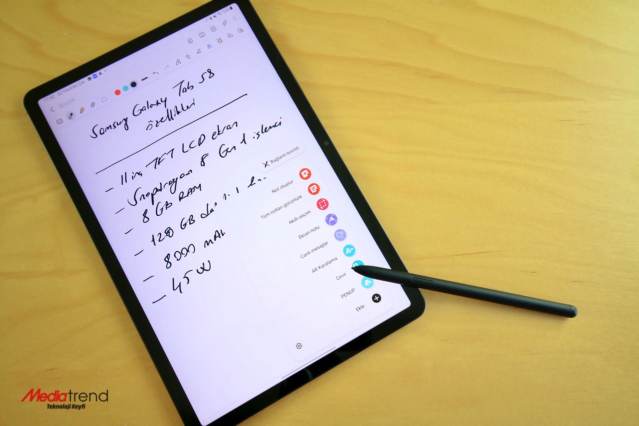 Galaxy Tab S8, özellikle eğlence veya oyun odaklı bir Android tablet isteyenler için yeterli bir cihaz. Bu tableti aynı zamanda işte veya üretkenlik odaklı çalışmalarda kullanmak istiyorsanız, farklı alternatifler var. Öncelikle Book Cover Keyboard satın alarak Tab S8’i bir dizüstü bilgisayar gibi kullanabilirsiniz. Ya da bir Bluetooth klavye ve fare ile masaüstü bilgisayara yakın bir deneyim sağlayabilirsiniz. İkinci yöntem aksesuarları ayrı ayrı taşımak açısından zahmetli, ancak daha keyifli ve verimli bir yöntem olduğunu söylemeliyiz. Üstelik Tab S8 yanında bir de monitörünüz varsa, o zaman masaüstü bilgisayarda çalışıyormuş hissini daha yoğun biçimde yaşayabilirsiniz. Bu yöntemde monitörde DeX modu açıkken S8’in ekranında tablet modu üzerinden çalışmak mümkün oluyor.