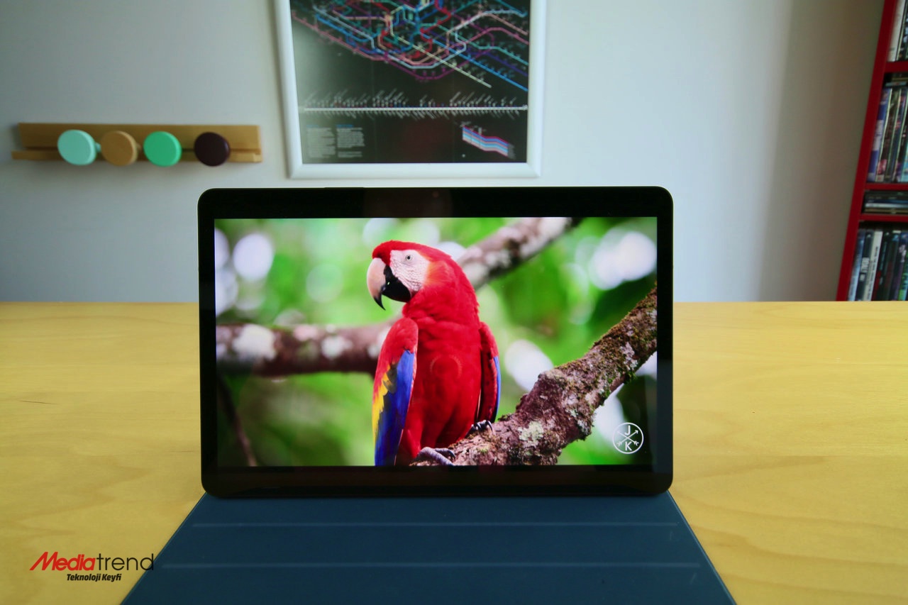 Samsung, Galaxy Tab S8’de 11 inç, 1600 x 2560 piksel TFT LCD ekrana yer vermiş. Bu ekran, yüksek parlaklığı sayesinde içeride ve dışarıda rahat bir kullanım sunuyor. Siyah renk derinliği Samsung’un AMOLED ekranlarıyla aynı seviyeye çıkmasa da, canlı renkler için yeterli. Bu tablette video izlemek veya oyun oynamak keyifli. 120 Hz yenileme hızı da ekranın öne çıkan özellikleri arasında bulunuyor. Bu yüksek yenileme hızı, tabletin kutusundan çıkan S Pen ekran kaleminin daha gerçekçi bir deneyim sunmasını sağlıyor. Bununla birlikte kullanıcı arayüzünde akıcı geçişler ve destekleyen oyunlarda daha gerçekçi görüntüler sunuyor. Bu tablette YouTube, Netflix ve bunun gibi kaynaklardan video izlemek keyifli. Dörtlü hoparlör sistemi ise, multimedya keyfini daha da yukarılara çıkarıyor. Bas ve tiz dengesi iyi ayarlanmış olan bu hoparlör sistemi, Dolby Atmos desteğinin katkılarıyla iyi bir çevresel ses etkisi de sunuyor.